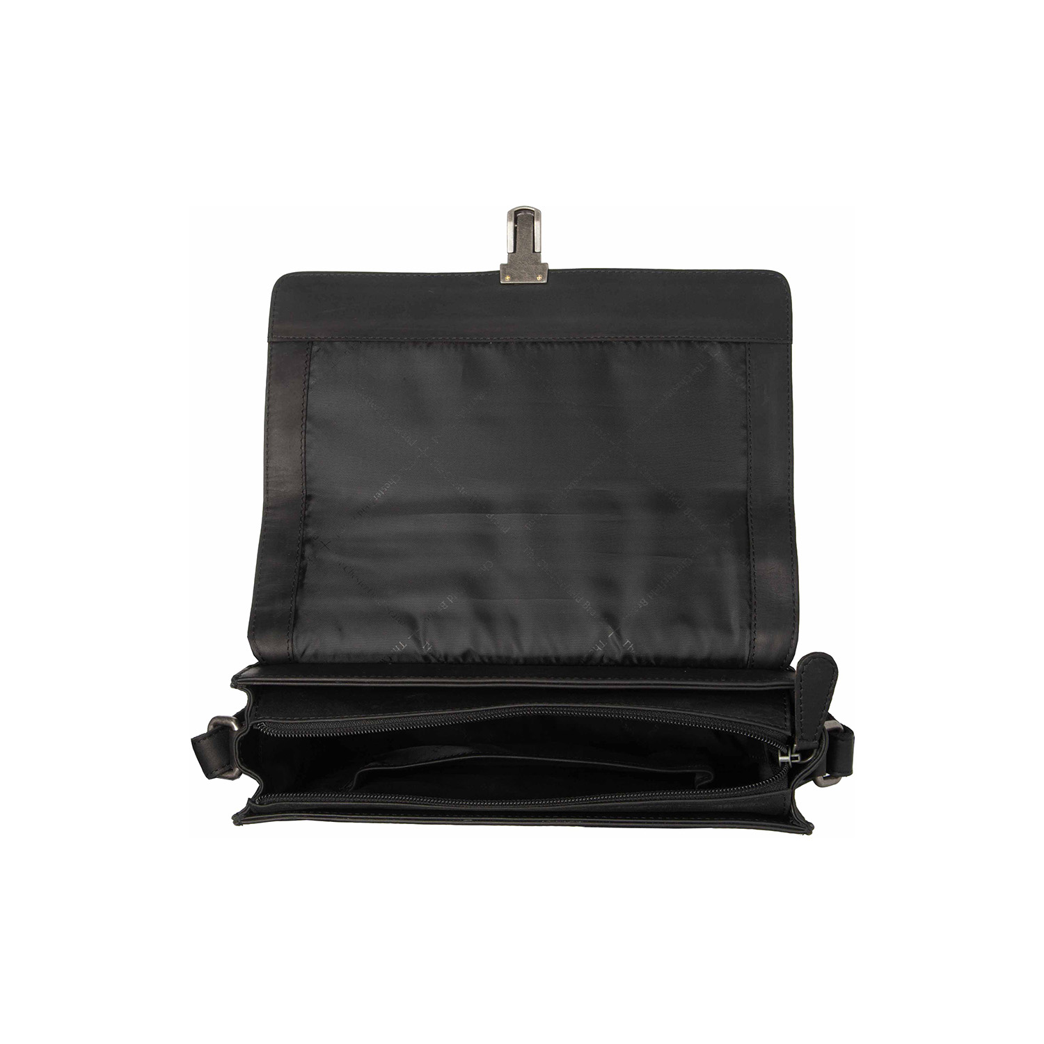 Главната преграда е покриена со преклоп и стилска тока, а дополнително се затвора со патент, овозможувајќи вашите работи да бидат сигурни и заштитени. Благодарение на поголемите димензии, има доволно простор за мобилен телефон, помал паричник, бележник и други секојдневни предмети.